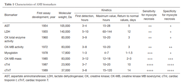 Cardiac biomarkers are the biochemical markers released in blood from injured myocardial tissue in both acute and chronic conditions, such as myocardial infarction or heart failure. They become elevated in blood after a certain period and can be measured. Examples of cardiac biomarkers commonly used in the acute clinical setting include troponin and creatine kinase MB isoenzyme (CKMB).1 Others, such as suppression of tumorigenicity 2 (ST2), can serve in long-term as markers of cardiomyocyte stress and fibrosis for risk stratification of patients with a wide spectrum of cardiovascular diseases.2