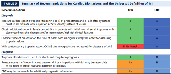 1. For individuals presenting with signs and symptoms of acute coronary syndrome (see Note 1), measurement of the following cardiac biomarkers for the diagnosis and/or prognosis of MI is considered NOT MEDICALLY NECESSARY: