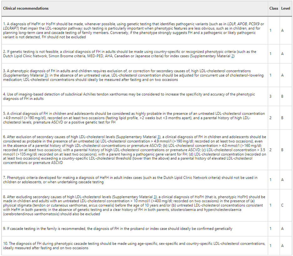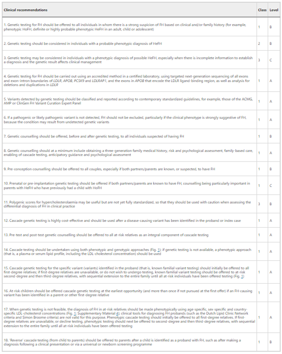 • “We suggest that if available, genetic testing should be used to stratify the ASCVD risk in patients with FH (Weak Recommendation, Moderate-Quality Evidence).